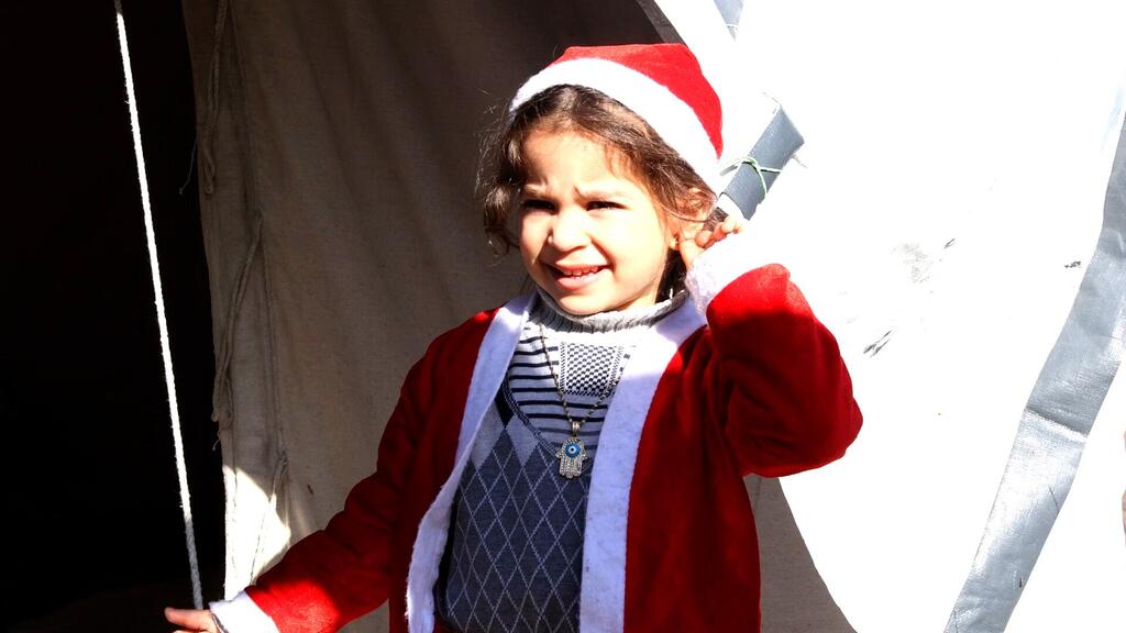 بين الخيام، تظهر طفلة صغيرة ترتدي الزي الأحمر لـ"بابا نويل" ، تجري في الممرات الضيقة بين الخيام وعلى مقربة، تجلس السيدة المسنة نعمة الخواجة حاملة حفيدتها أمام خيمتهم، متعلقة بأمنية بسيطة مع دخول عام 2026، "أتمنى أن أعالج وأجري العملية الجراحية التي أحتاجها وأن نرى أياما أفضل".