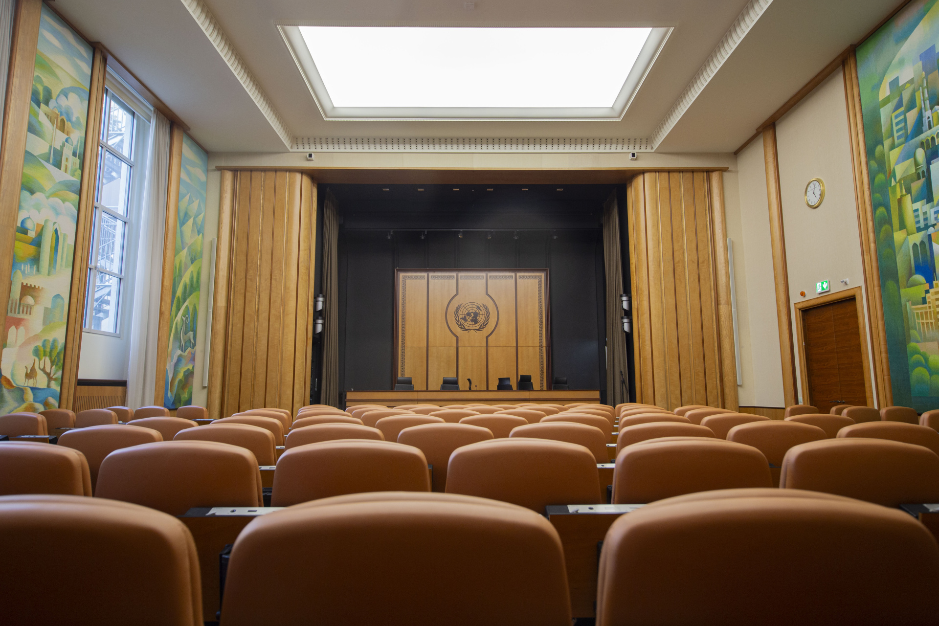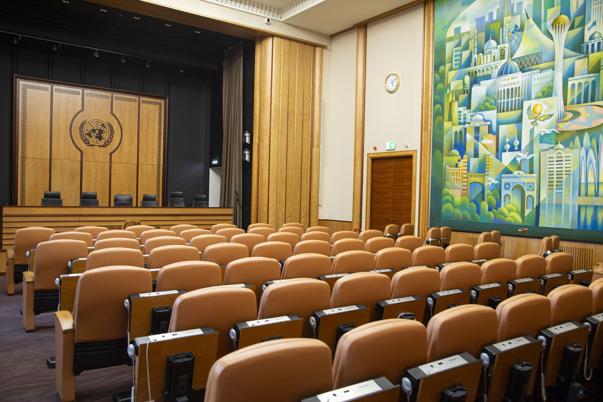 该厅室于2012年由哈萨克斯坦重新设计和翻修,大大拓宽了本组织举行政府间会议、新闻发布会、会外活动、文化演出和电影放映的可能性。哈萨克厅配备了最先进的技术和设计,最多可容纳145人。